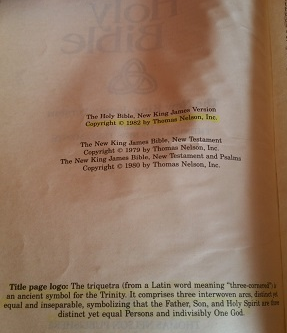 When the old and new testament NKJV was released in 1982 it still retained the triquetra on the spine and inside title page